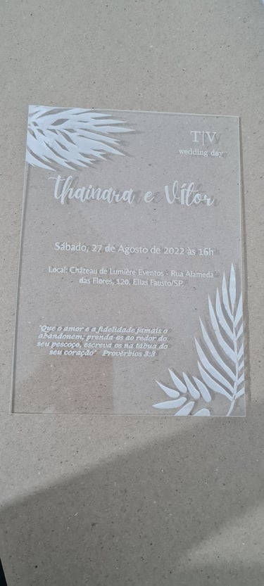 Na Lume Acrílicos, sabemos que momentos especiais merecem ser celebrados com estilo e elegância. Por isso, oferecemos uma gama de produtos personalizados em acrílico que tornam casamentos e festas ainda mais inesquecíveis. Combinando design sofisticado e materiais de alta qualidade, criamos peças únicas que encantam e surpreendem.